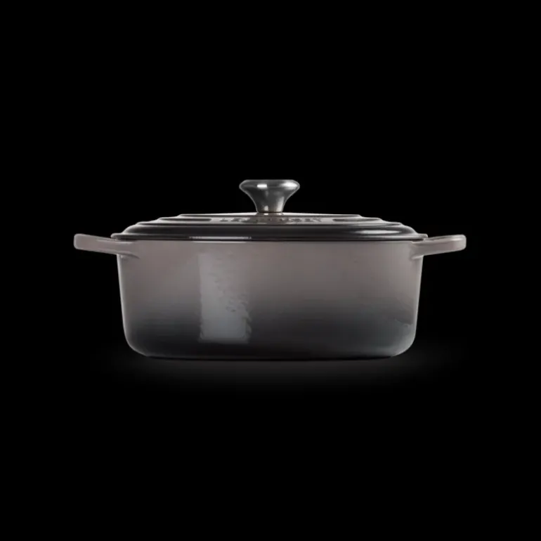 La Cocotte en fonte Ovale 29 cm Flint Le Creuset Signature est composée des meilleurs matériaux puisqu’elle est faite de fonte, un élément anti-adhésif et conducteur de chaleur. Ainsi, avec votre cocotte en fonte, la chaleur sera répartie uniformément du fond de la cocotte jusqu’au couvercle. De plus, la fonte émaillée a pour avantage d’être anti-bactérienne et de posséder une surface lisse : un bonus pour l’entretien de cet ustensile.