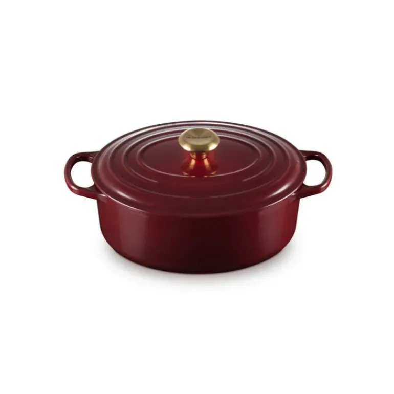 Cocotte en Fonte Ovale 29 cm Garnet Bouton Doré Le Creuset Signature