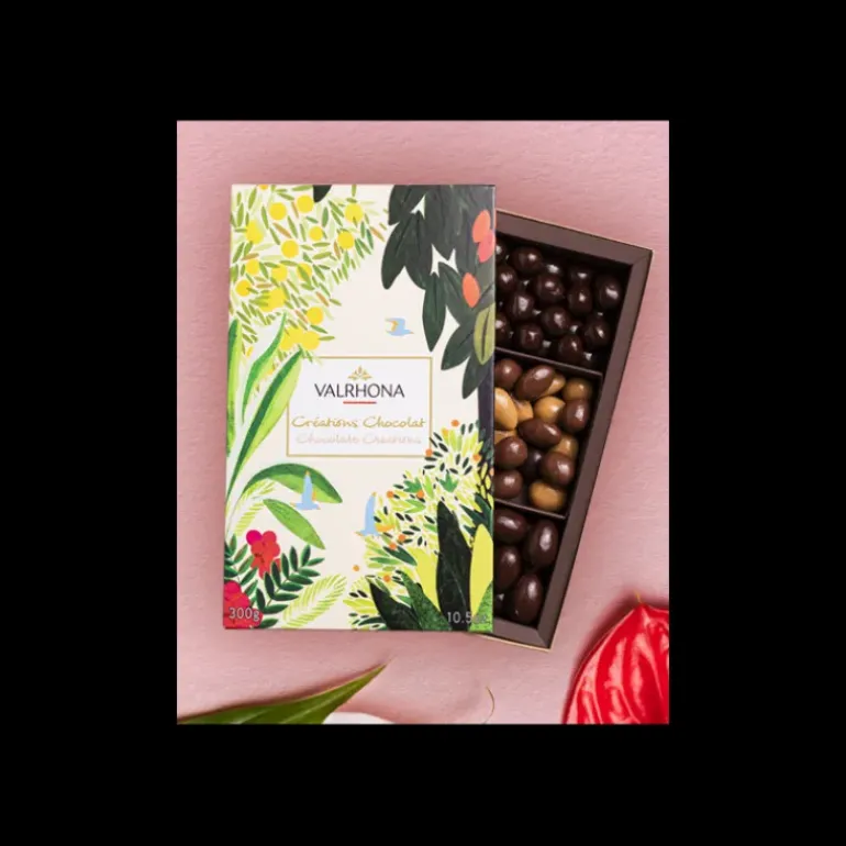 Découvrez le Coffret Assortiment Chocolat Noir, Lait, Dulcey 300 g Valrhona et laissez-vous séduire par l’expérience gustative ultime.