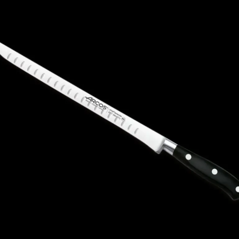Pour les lames de la collection Riviera, Arcos a utilisé de l’acier inoxydable Nitrum, leur conférant une solidité à toute épreuve, un grand pouvoir de coupe (immédiat et dans le temps) supérieur aux aciers classiques européens (environ + de 40%).