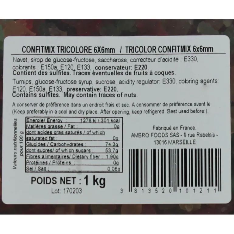 Cubes de Fruits confits tricolores 1kg