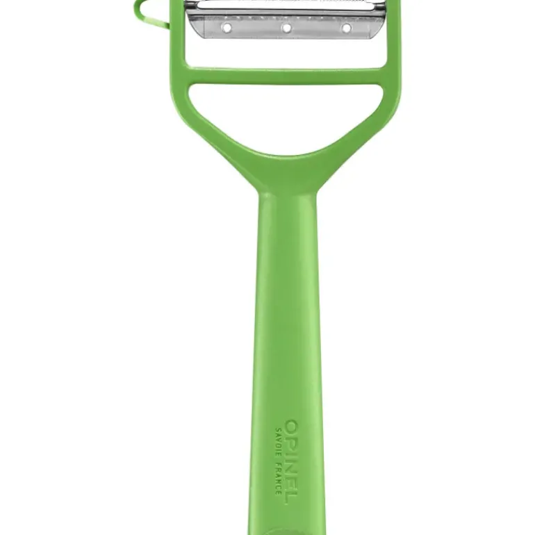 Composé de deux lames en inox dont une micro dentée, cet ustensile permet non seulement d’éplucher les aliments, mais aussi de les couper façon julienne. Vous trouverez également un embout sur le côté de l’éplucheur Opinel pour énucléer les pommes de terre sans effort.