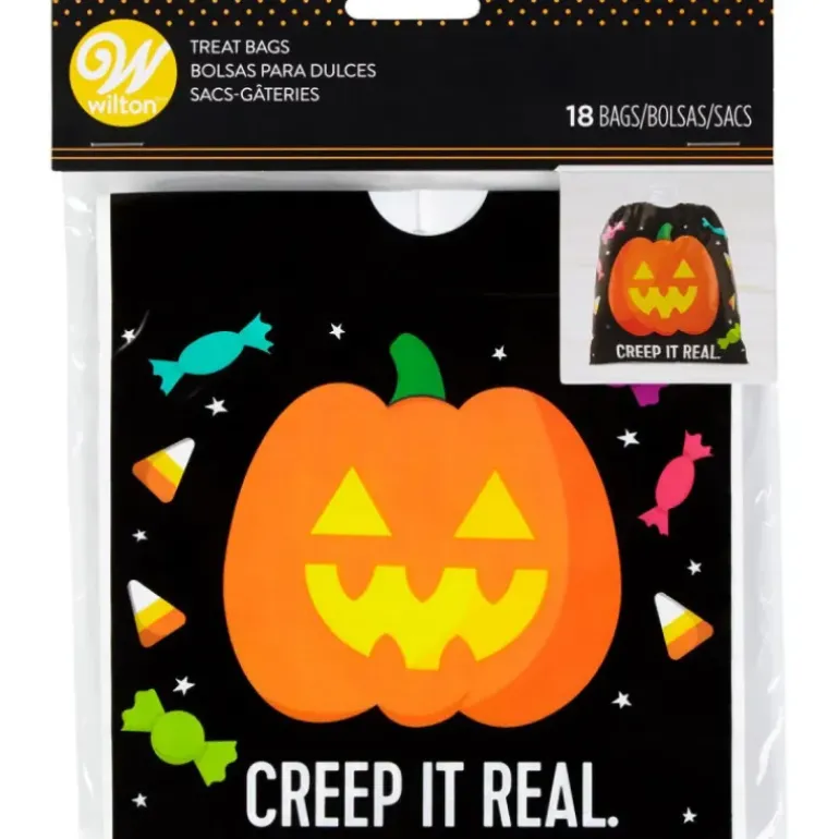 Si cette année vous avez décidé de préparer une fête d’Halloween : offrez des sucreries à vos convives en les renfermant dans des Sachets Bonbons Citrouille. Mesurant 15 x 15 cm, ces Sachets à Friandises Wilton pourront contenir des vers Haribo ou encore des dentiers tutti frutti : un cadeau parfait pour les plus téméraires !