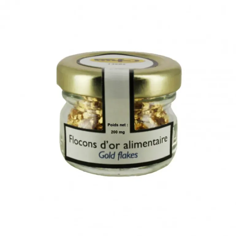 Donnez de l’éclat et de l’élégance à vos créations et à vos desserts en appliquant quelques flocons d’or sur le dessus.