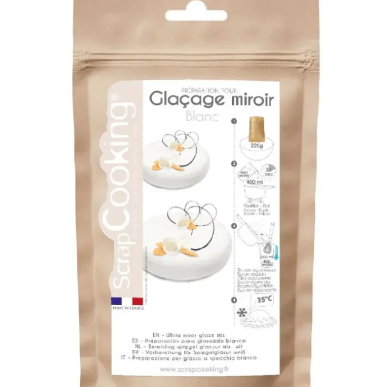 Pour un rendu aussi délicat et lisse qu’une pâtisserie qui sort de vitrine, optez pour un nappage miroir blanc. Ultra brillant le Glaçage miroir Blanc 220g Scrapcooking, vous permet de recouvrir joliment vos gâteaux, pâtisseries et entremets glacés.