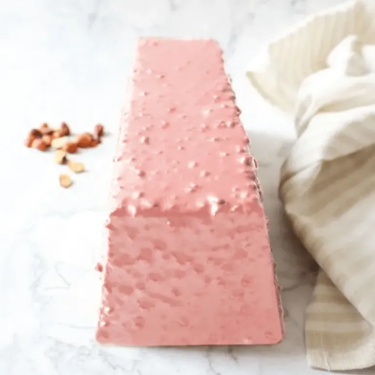Vous souhaitez un glaçage hors du commun et qui se démarque des autres ? Optez pour ce glaçage au chocolat teinté de rose. Par sa sublime couleur rose, ce glaçage au chocolat blanc est le glaçage rocher incontournable dont vous avez besoin. En plus d’être joli, ce glaçage rose rocher est autant croustillant que gourmand par son nappage constitué de chocolat blanc, d’amandes et de noisettes.