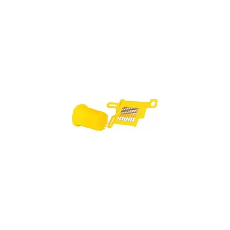 > Ce jeu de deux grilles (inférieure et supérieure) 7 x 7 mm et le poussoir adapté s’utilisent uniquement avec le coupe-légumes Dynacube <