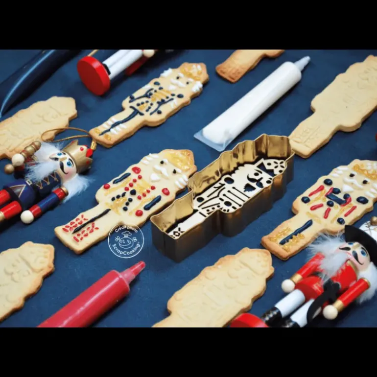 Revisitez un grand classique de l’opéra avec le kit à biscuit casse-noisette Scrapcooking. Composé d’un emporte-pièce en inox et d’un embosseur en bois, ce kit biscuit vous assure des biscuits à thème magnifiques. Pour un thème casse-noisette ou pour Noël, confectionnez des sablés reprenant l’élégante allure du prince envoûté en forme de casse-noisette.