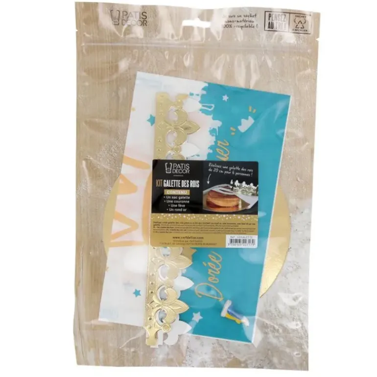 - Conditionnement : 1 sac + 1 fève + 1 couronne + 1 rond