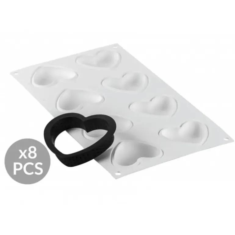 Kit Moule Silicone 8 Tartelettes Cœur 8 x 7 cm Silikomart Professional