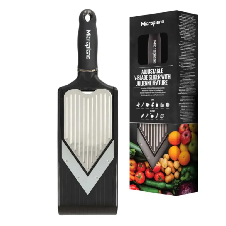 Découvrez la mandoline multifonction Microplane et laissez-vous séduire par sa lame double qui vous permet de réaliser deux fois plus de plats délicieux.