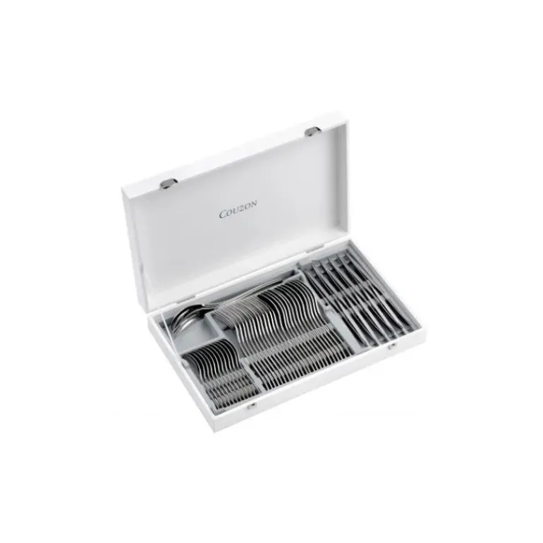 Pour que vos Couverts Couzon Persane aient une longue durée de vie, ceux-ci sont épais de 4 mm. Rangés dans un écrin en bois, les 50 couverts de cette Ménagère Couzon pourront être offerts à l’un de vos proches.