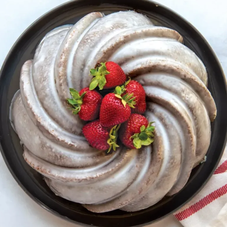 Préparez un appareil à gâteau savoureux, versez-le jusqu’au ¾ du moule tourbillon, laissez poser une dizaine de minutes afin que la pâte imprègne chaque courbe, et enfournez ou placez au congélateur. C’est là tout ce qu’il vous faut faire pour un obtenir un fabuleux dessert. Peu importe l’occasion, peu importe la décoration que vous placerez dessus, un gâteau confectionné ave le moule tourbillon Nordic Ware sera toujours exceptionnel.