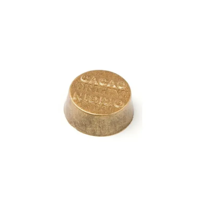 Vous pourrez réaliser des bonbons ronds en chocolat estampillés « 100% origin cacao ».
