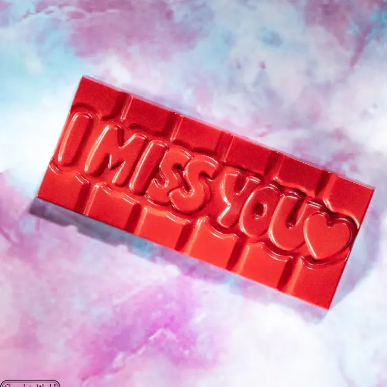 Vous êtes loin de votre bien-aimé(e), de votre mère ou votre meilleur(e) ami(e) ? Envoyez-lui une tablette de chocolat maison avec le moule chocolat tablette I miss you Chocolate World et montrez-lui ainsi que vous pensez à lui/elle !
