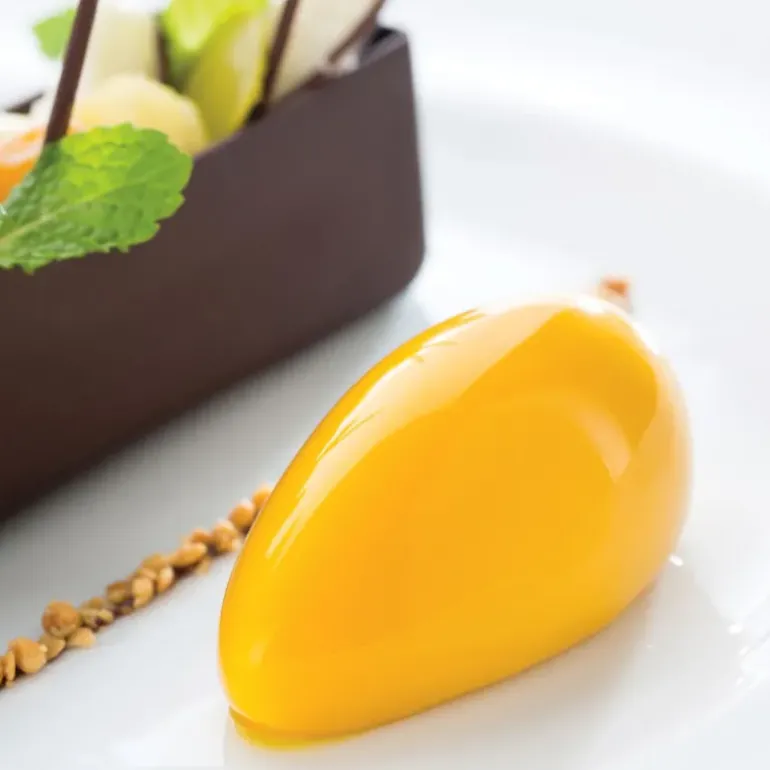 Le moule silicone est doté de 12 empreintes équipées de bordures conçues pour donner à vos quenelles une belle forme arrondie à leur base. Vous pouvez également l’utiliser dans le but de concevoir des inserts et décors pour vos gâteaux. Le moule se distingue par sa versatilité, en effet il est adapté au four, au micro-ondes et même au frigo, ce qui vous donne l’opportunité de préparer des quenelles froides et chaudes. Enfin, pour rendre vos quenelles plus élégantes que jamais, recouvrez-les d’un délicat glaçage miroir ou de spray velours.
