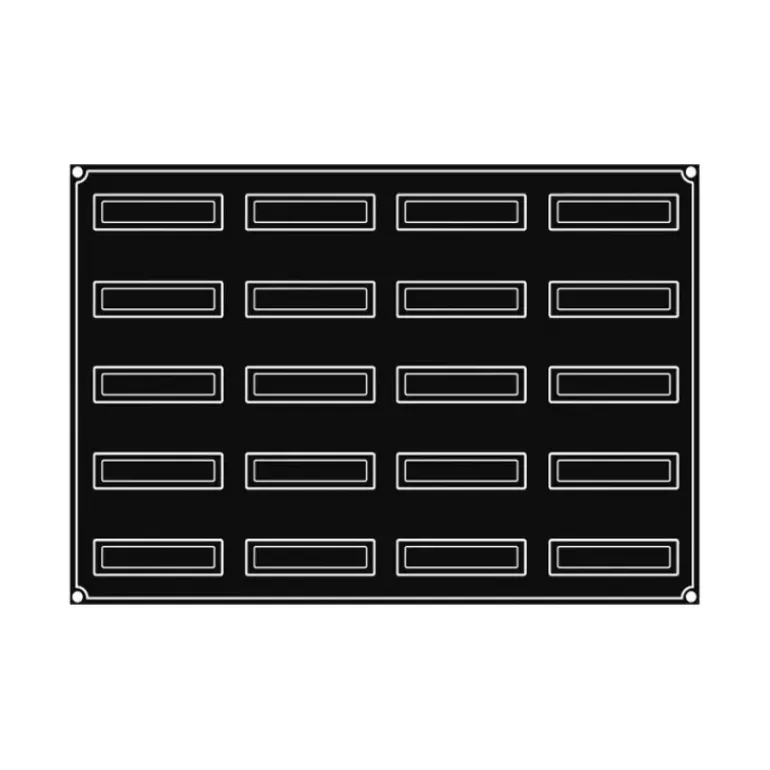 Pour une création raffinée, utilisez le Moule silicone 20 Bandes Inclinées Pavoflex. Son design sobre et élégant habillera vitrines et assiettes.