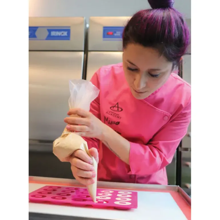 Le Moule Silicone Rainbow Stick Pavoni est fourni avec 50 bâtonnets à glace et 50 supports qui viendront soutenir vos mini donuts empilés. Chacune des 20 empreintes de ce Moule Silicone Pavoni mesure 4,6 x 3,5 cm pour une hauteur d’1,2 cm et une contenance de 12 ml.
