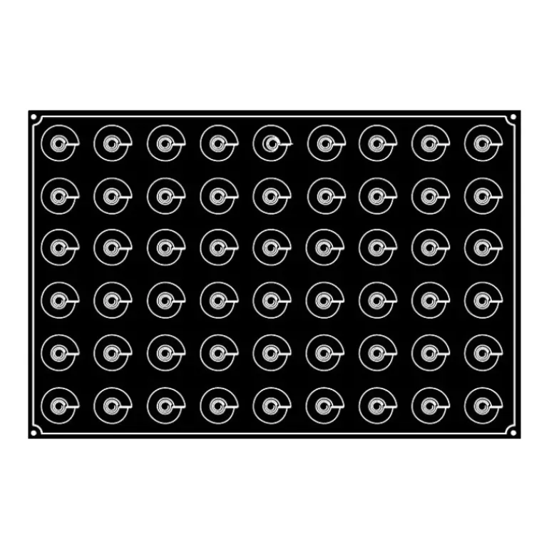 Variez les plaisirs et les saveurs dans les 54 empreintes d’une contenance de 30 ml de ce moule avec vos créations sucrées ou salées.