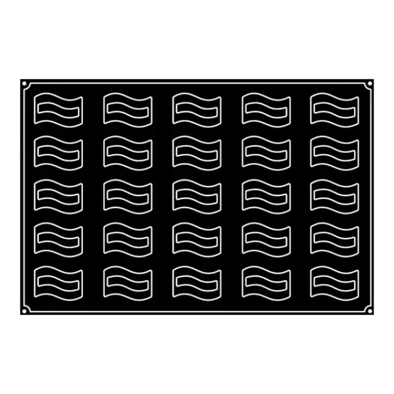 Avec ce moule réalisez jusqu’à 25 Rectangles Vagues de 130 ml qui viendront embellir votre vitrine de gourmandises. 25 préparations en une fournée, c’est ce qui vous assurera une amélioration de votre rendement !