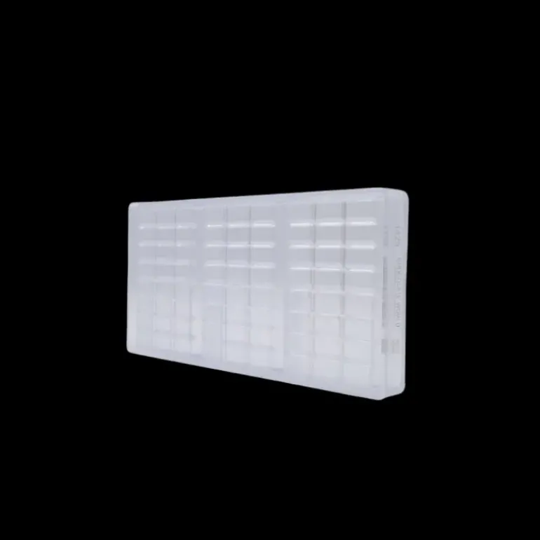 Chaque empreinte de ce moule tablette mesure 12,4 x 7,7 cm pour une hauteur de 2 cm, offrant un format généreux pour vos créations chocolatées. Ce moule à chocolat de qualité, fabriqué en Belgique, est parfait pour réaliser des tablettes de chocolat personnalisées, avec des garnitures variées selon vos envies.