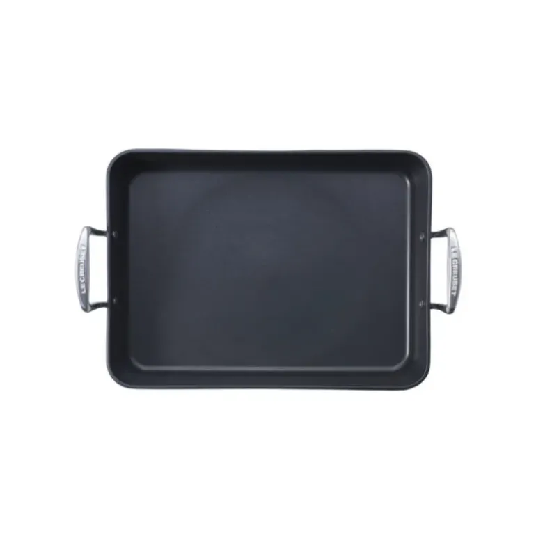Le Plat à rôtir anti-adhérent 35×27 cm Les forgées Le Creuset sera un atout dans la préparation et la présentation de tous vos plats gourmands. Ses bords hauts permettent de réaliser des recettes en quantités généreuses. La technologie anti-adhérente des Forgées Fonte Aluminium permettra aux aliments de rôtir avec ou sans graisse. Le plat est utilisable sur tous les feux (sauf barbecue).