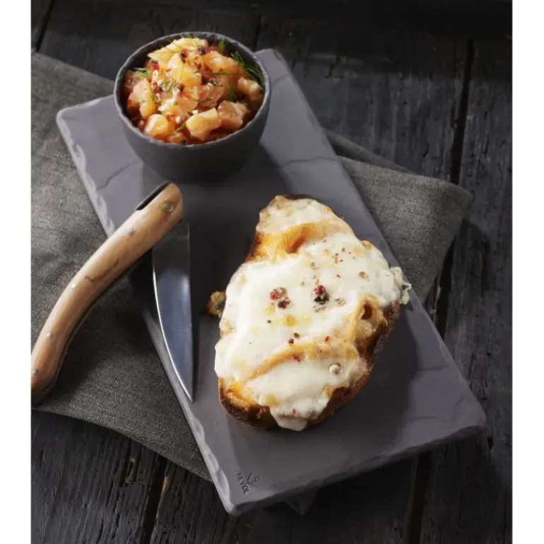 L’assiette rectangulaire 20 x 10 cm en porcelaine de la collection Basalt de Revol n’a pas fini de vous surprendre par sa performance! La porcelaine est teintée dans la masse pour donner cet aspect ardoise qui fait le charme et l’originalité de l’assiette Basalt.
