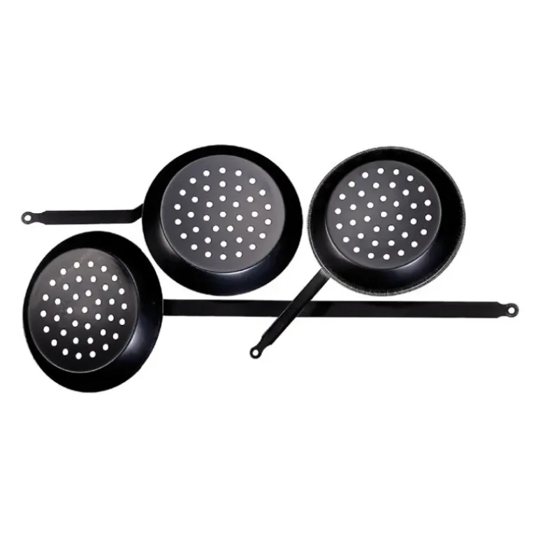 La poêle à marrons à trous dans le fond est un ustensile traditionnel, toujours réalisé en tôle d’acier pour sa robustesse. Ces modèles de poêles à marrons sont à utiliser exclusivement sur braise.