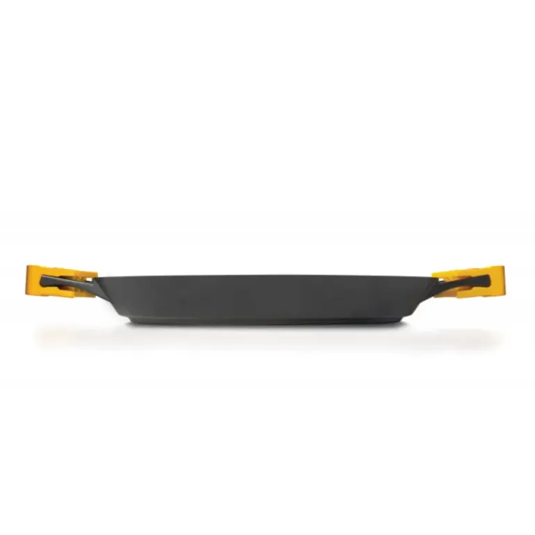 Faite en fonte d’aluminium, cette Poêle à Paella revêt 3 couches anti-adhérentes, évitant à vos aliments d’accrocher dans le fond de votre poêle. De plus, cette Poêle en Aluminium possède des anses amovibles, qui s’avéreront utiles pour amener votre plat à paella sur la table, sans vous brûler les mains.