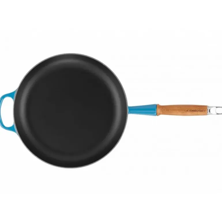 Poêle en Fonte 28 cm Azur avec Manche en Bois Le Creuset Signature