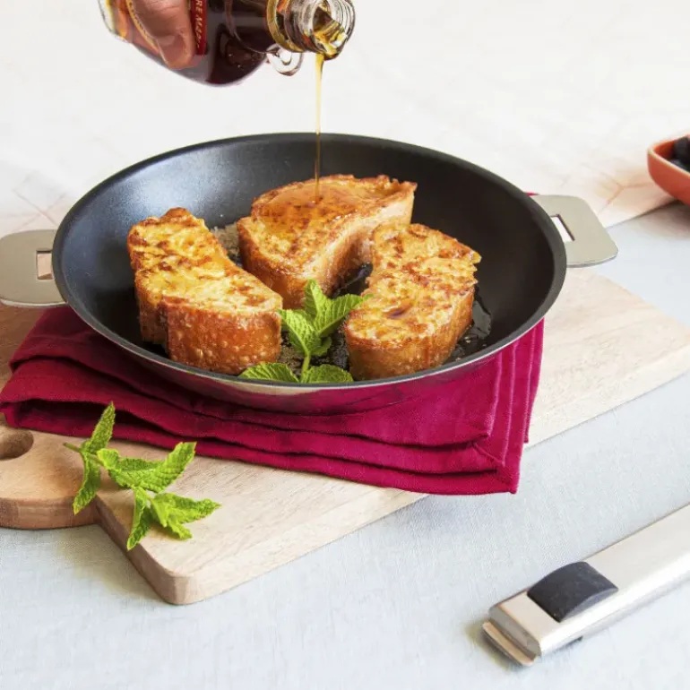 De plus, la poêle de 26 cm vous assure une cuisine saine sur tous les types de feux, même le four ! Vous pourrez la manier sans souci à la sortie du four grâce à sa poignée amovible (vendue séparément).