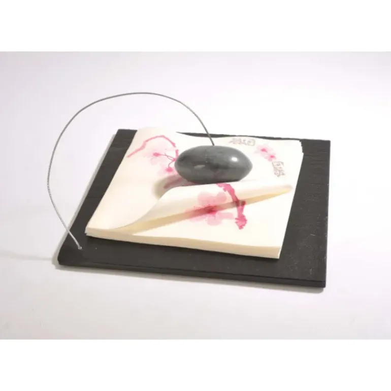 Ce galet qui sert de presse-papier permet d’utiliser ce porte serviette autant à l’intérieur qu’à l’extérieur, en évitant que le vent ne fasse s’envoler les serviettes.