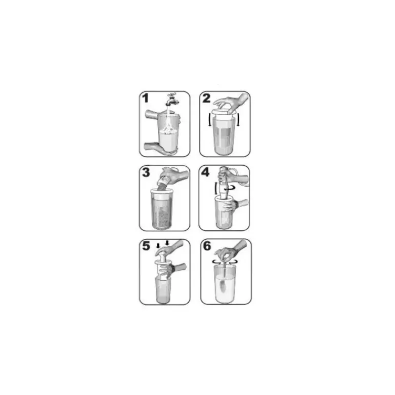 Le presseur à laits végétaux ChufaMix est composé de 4 pièces : un récipient, un verre-filtrant, un mortier et un couvercle pour fermeture hermétique.