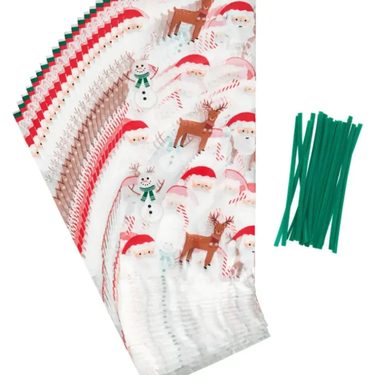 Déposez vos friandises et chocolats Noël à l’intérieur de ce lot de Sachets Bonbons Esprit de Noël 11 x 23,5 cm avec Attaches Sachet Wilton (x20).