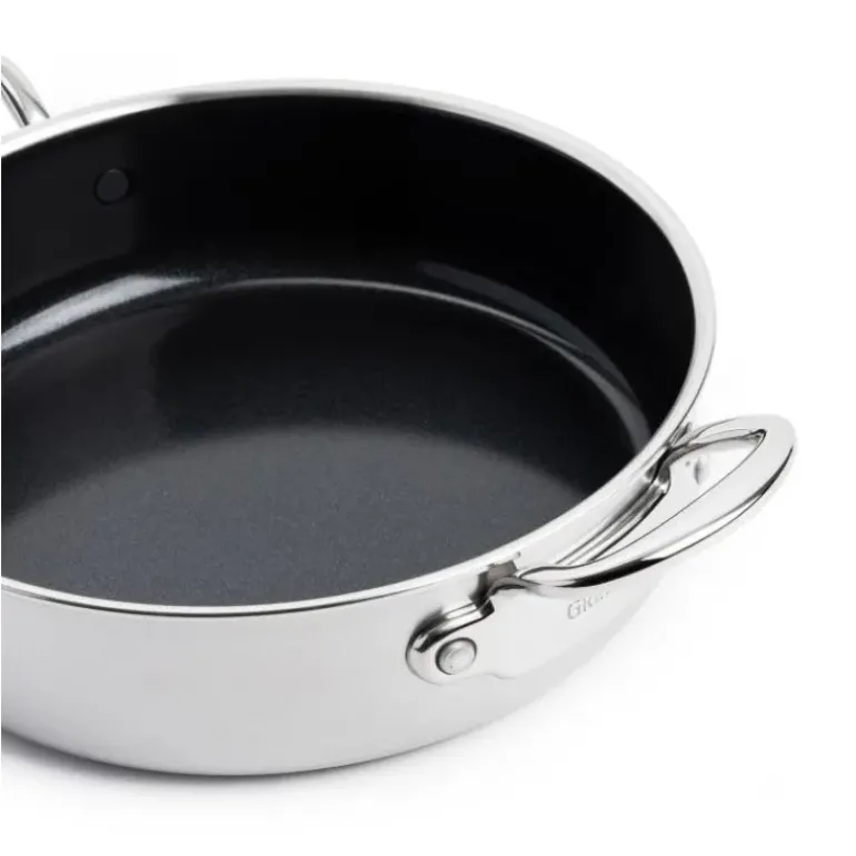 Avec cette sauteuse en inox GreenPan, vous pourrez cuisiner vos plats favoris en gardant toujours un œil sur la cuisson. A mi-chemin entre la casserole et la poêle, cette sauteuse antiadhésive est vendue avec son couvercle en verre ; idéal pour surveiller les préparations sans avoir à laisser s’évaporer les vapeurs de cuisson.