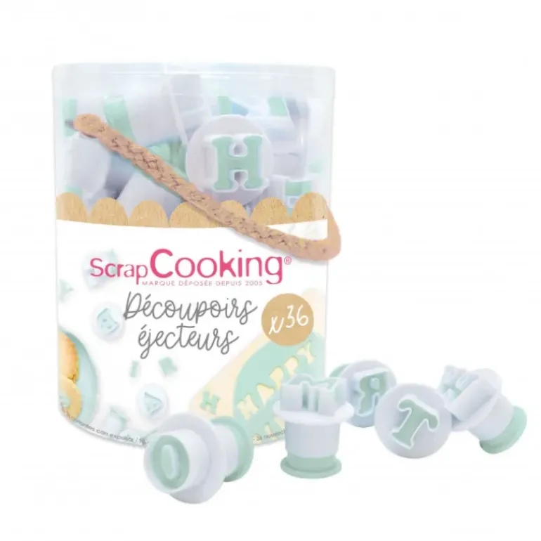 Seau 36 découpoirs éjecteurs lettres et chiffres ScrapCooking