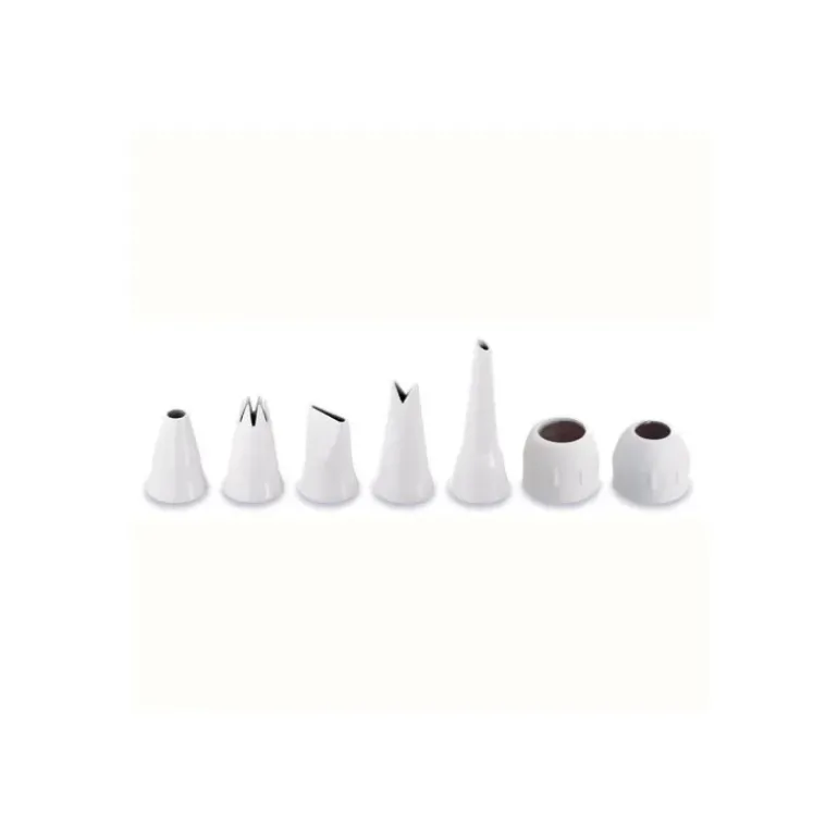 - Contient 5 douilles de taille standard : rond – feuille – étoile – pétale – remplissage