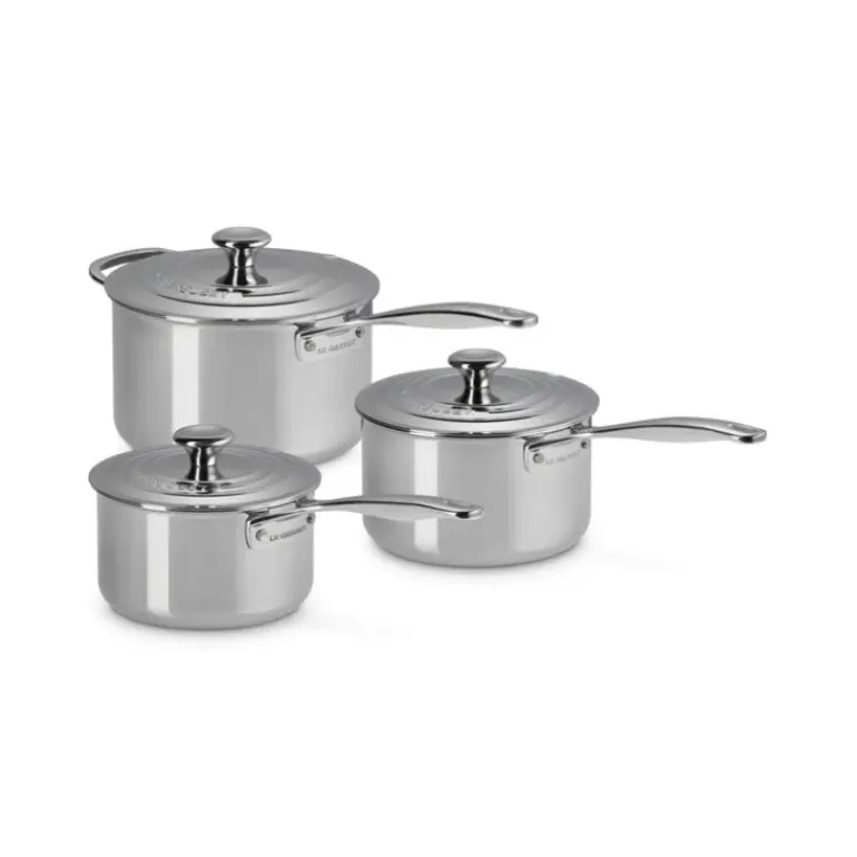 Le Set 3 Casseroles Inox Signature avec Couvercle Le Creuset est le trio parfait pour tous vos plats savoureux.