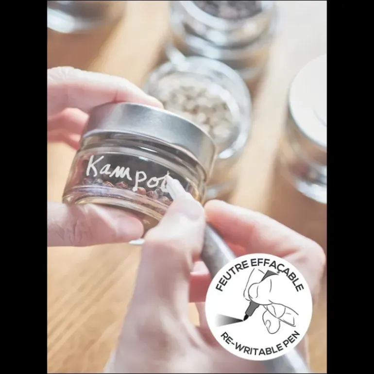 Interchangeables et empilables, ces pots de poivre vides de la collection Maestro sont livrés avec un feutre vous permettant d’inscrire la contenance de vos pots.