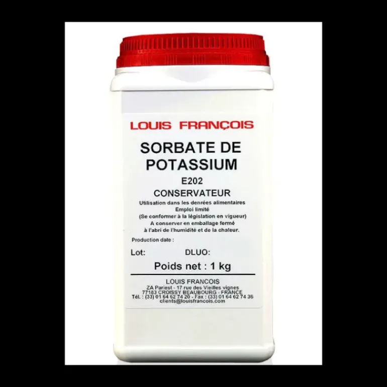 Le Sorbate de Potassium E202 Louis François se présente sous forme de poudre, de granulé ou de bâtonnet de couleur blanc. Utilisé en tant que conservateur, il inhibe la croissance des levures et des moisissures, ainsi que de certaines bactéries.