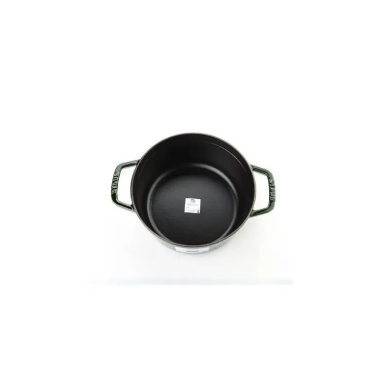 La cocotte en fonte Staub est la cocotte de référence dans les cuisines des plus grands chefs. Pour votre cuisine, Staub a conçu une cocotte en fonte Vert Basilic en émaux « majoliques ». Les émaux majoliques sont des émaux composés à 100% de verre afin d’obtenir un émail d’une brillance unique et une teinte d’une intensité profonde. Votre cocotte est belle et d’une qualité irréprochable.