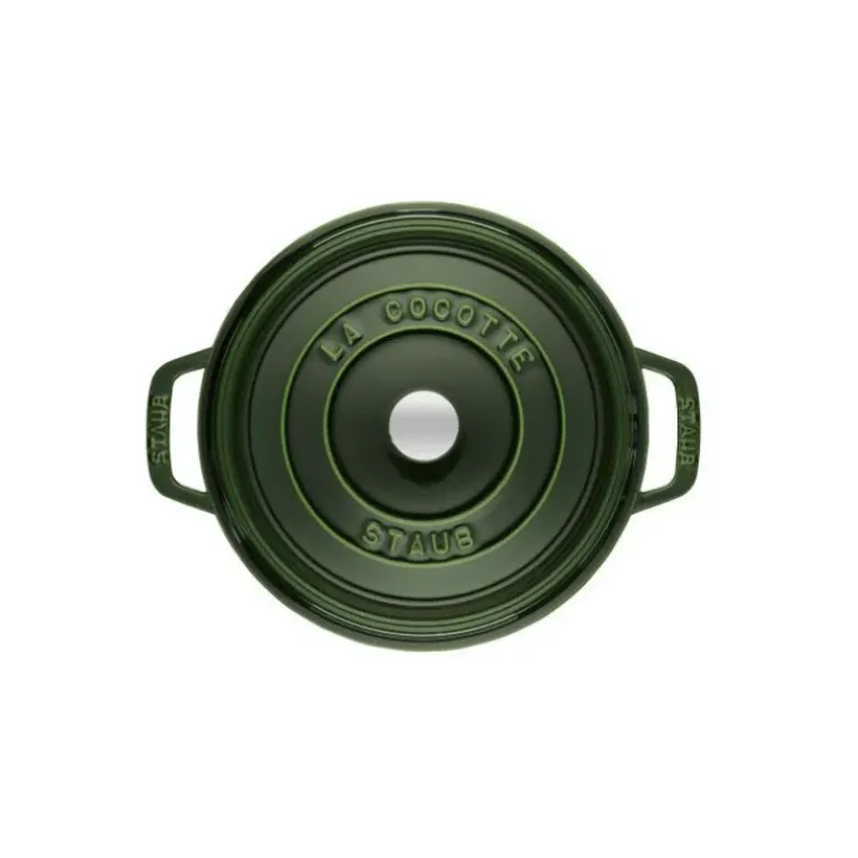 D’un beau Vert Basilic cette cocotte en fonte Staub viendra apporter de la couleur et vitalité dans votre cuisine et au centre de votre table. Conçue en fonte de qualité supérieure, la cocotte ronde Staub s’utilise sur tous les types de feux et son couvercle surmonté d’un bouton en laiton vous permet de la mettre au four pour des plats gratinés à souhait. D’un volume de plus de 5 litres, cette cocotte en fonte est idéale pour régaler avec vos plats mijotés jusqu’à 5 convives.