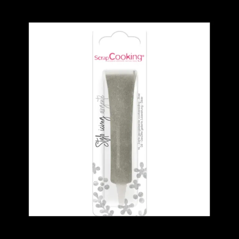 Découvrez le Stylo Alimentaire Icing Argenté 26 g Scrapcooking, qui vous permettra de décorer vos gâteaux et biscuits avec un effet métalisé !