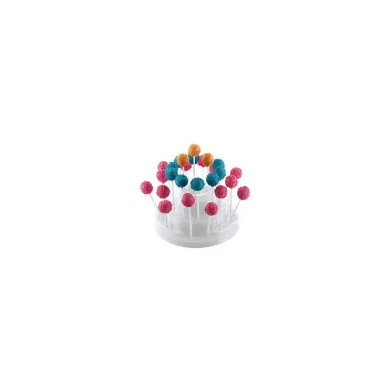 Le support Pop Cake Blanc Silikomart à étage est idéal pour présenter vos sucettes faites maison lors des anniversaires, baptêmes, mariages et autres festivités ! Avec ces 225 mm de diamètre, ce présentoir pour sucettes peut contenir 27 sucettes, qu’elles soient sur des bâtonnets en bois ou en plastique. De la forme d’une grosse pièce montée, il met en avant vos réalisations et en fait un joli centre de table pour épater vos invités. Mis à part les Pop Cakes, il peut également vous servir à présenter des brochettes de fruits, de bonbons, ou encore des petits canapés planté sur un pique en bois lors un apéro.
